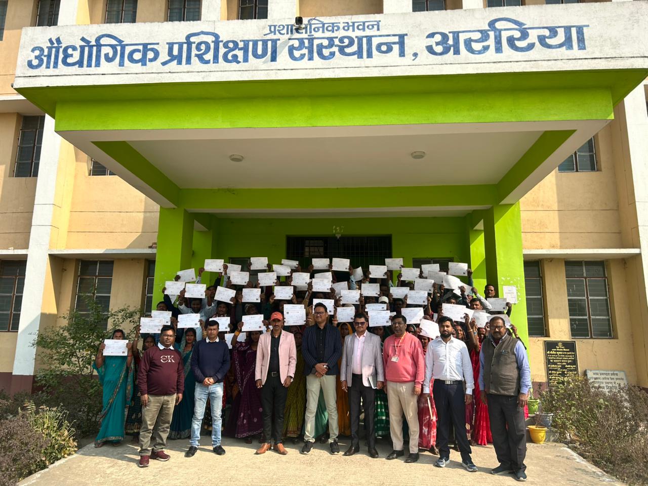 राजकीय आईटीआई अररिया, रानीगंज में पीएम विश्वकर्मा योजना अंतर्गत प्रशिक्षण प्राप्त अभ्यर्थियों को प्रमाण पत्र दिए गए, स्वरोजगार और आत्मनिर्भरता पर जोर दिया गया।