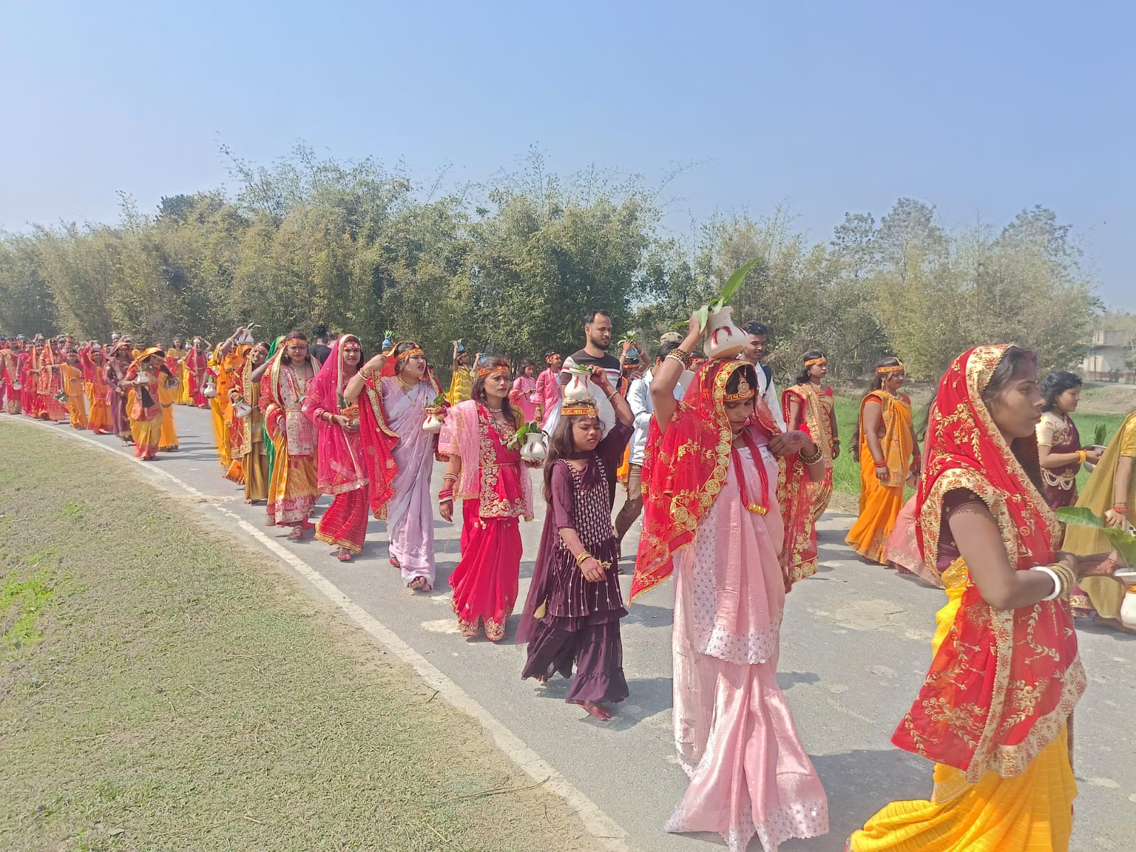 दिलीप बिश्वास, पलासी (अररिया)। मजलिसपुर गांव में आयोजित होने वाले महाविष्णु यज्ञ एवं 108 घंटे का अष्टयाम संकीर्तन की सफलता को लेकर शनिवार को भव्य कलश शोभा यात्रा निकाली गई। इस कलश यात्रा में करीब 1100 महिलाएं और कुंवारी कन्याएं शामिल हुईं। पूरे मार्ग में भक्तिमय गीतों और जयकारों से वातावरण गूंज उठा।